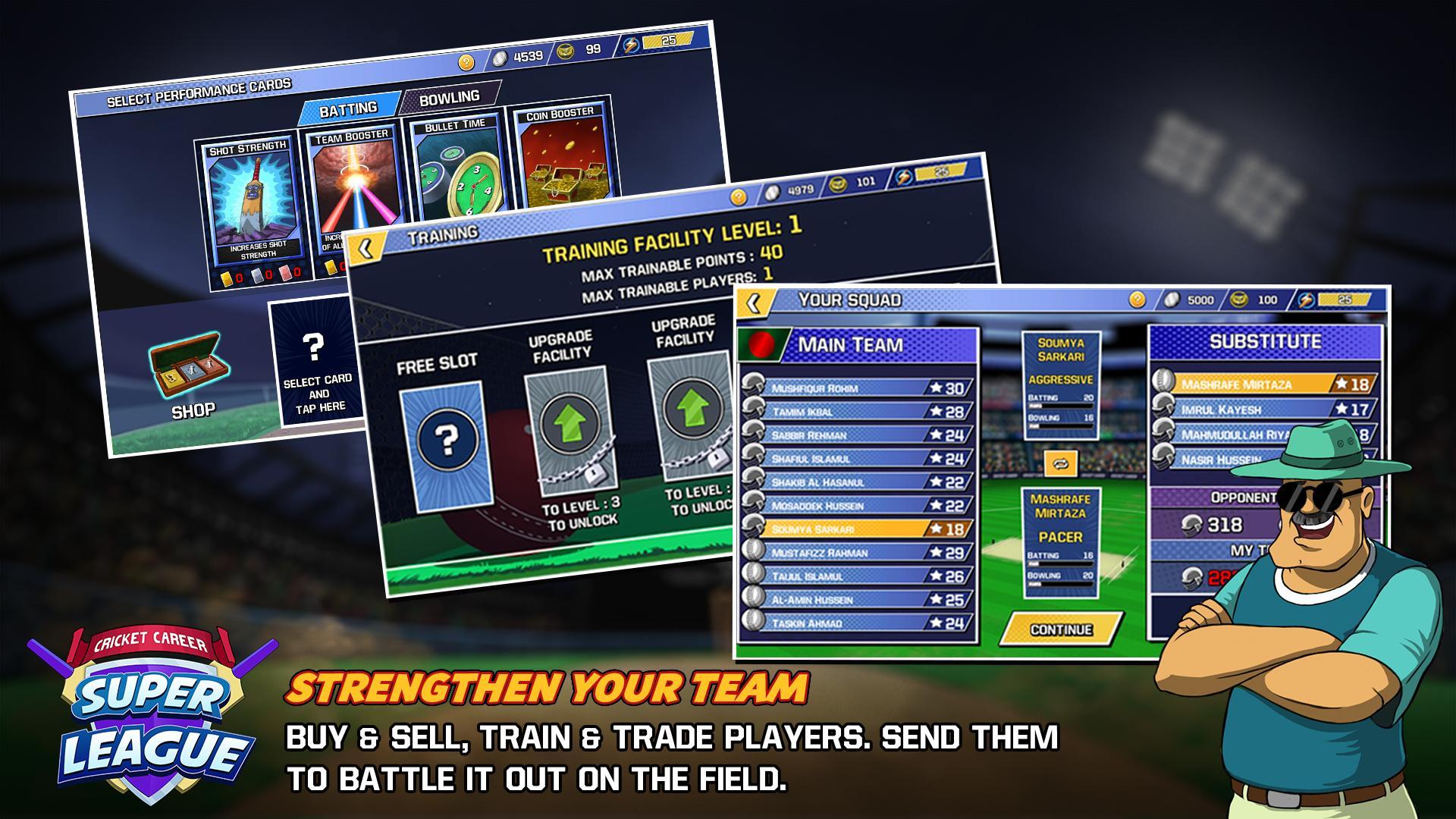 Приготовьтесь к захватывающему действию менеджера по крикету, где вы владеете командой по крикету своей мечты, выбирайте и играйте в качестве лучших звезд крикета и выиграйте Суперлигу!