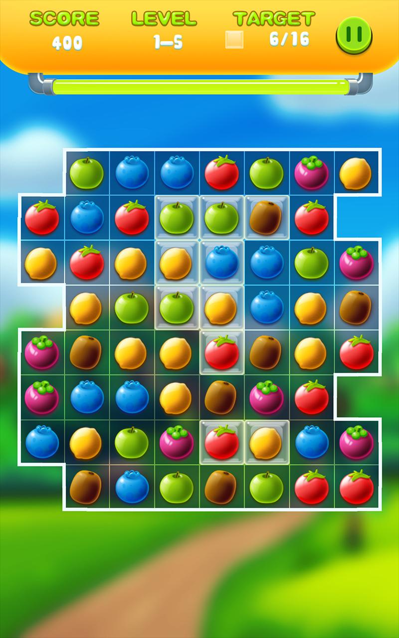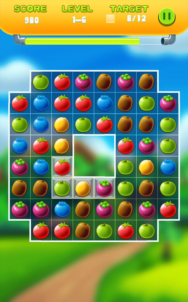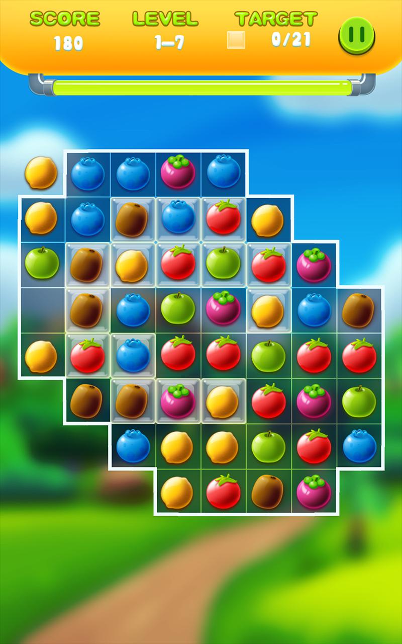 Совместите фрукты на три или более, чтобы они исчезли.