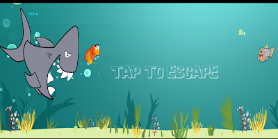 Убежать от большой голодной акулы. Убегая за наблюдение за взрывающимися рыбами, скалы падают прямо на землю