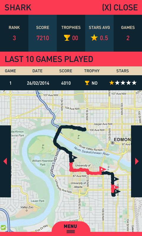 Игра использует GPS и технологию картирования для превращения реального мира в игровой доску. Вы путешествуете по игровой доске, физически бегая на улицу. Вам сталкивается с 5 уровнями, увеличивающимися в сложности и вознаграждениях, которые вы можете заработать. Выиграйте очки, пройдя контрольно -пропускные пункты на игровой доске. Вы должны выяснить самый быстрый способ достичь их в течение времени. Выиграйте в результате повышения ранга трофеев, завершив все 5 уровней. Вы также можете собрать бонусные элементы «звезды», которые случайным образом распространяются на игровой доске.