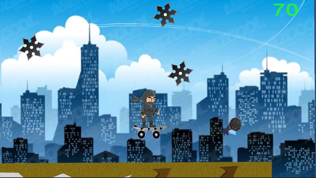 Вы - ниндзя со своим катаниями, ищущим свои шурикуны, предполагает вызов и удается получить все шурикуны, но некоторые могут навредить, вы достигли как можно дальше