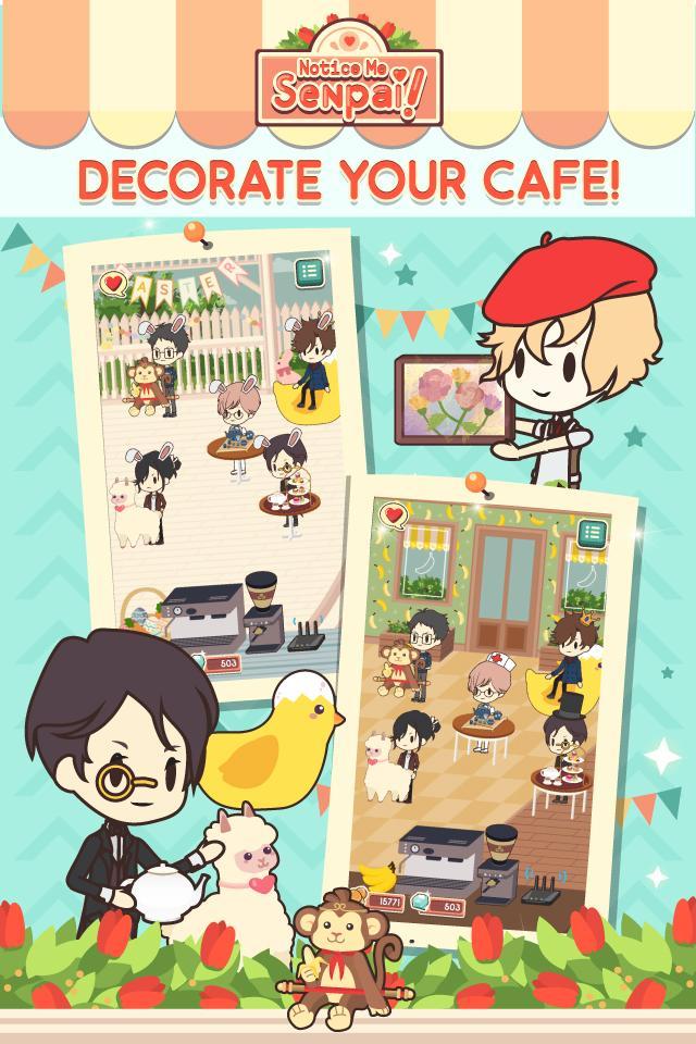 В « Notice Me Senpai », вы играете в качестве первой ученицы в частной школе Elite All-Boys. Вы берете работу в кампусе третьего курса кафе, чтобы помочь оплатить обучение. Вы привлекаете новых клиентов (senpai), объединяя кофе и размещая декоры. Когда вы управляете кафе, вы встречаете всевозможных симпатичных икеменских сенпай (старшеклассников или пожилых людей). У этой школы есть ваш выбор. Сможете ли вы заставить их всех заметить?