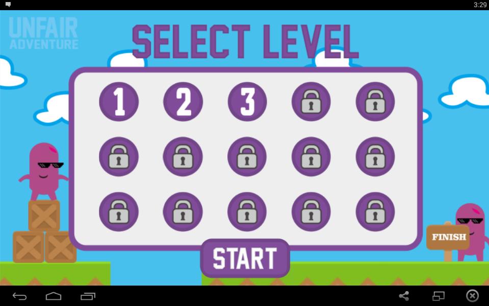 Unfair Adventure - это приключенческая игра, в которой вы должны прогрессировать на каждом уровне. Но будьте осторожны, все уровни заполнены различными ловушками. Управляйте персонажем в 2D вселенной и попытайтесь победить ловушки.