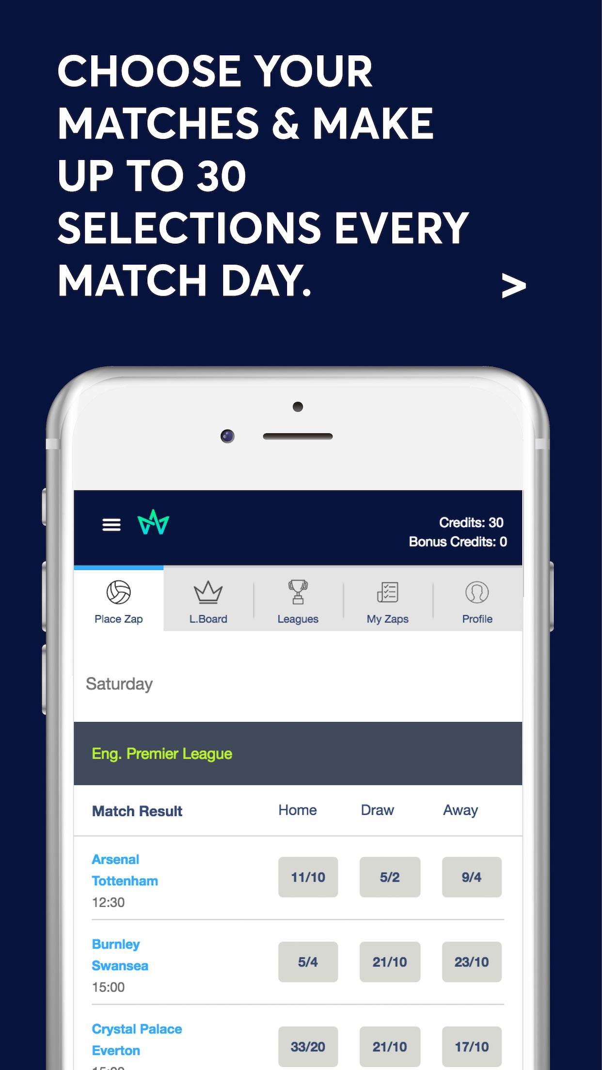 Выберите ставки - мы предоставляем шансы на все дневные матчи и даем вам 30 бесплатных кредитов, чтобы использовать то, как вы хотите. Сделайте 30 отдельных выборов или увеличьте шансы с помощью множества и накоплений. Вы решаете.