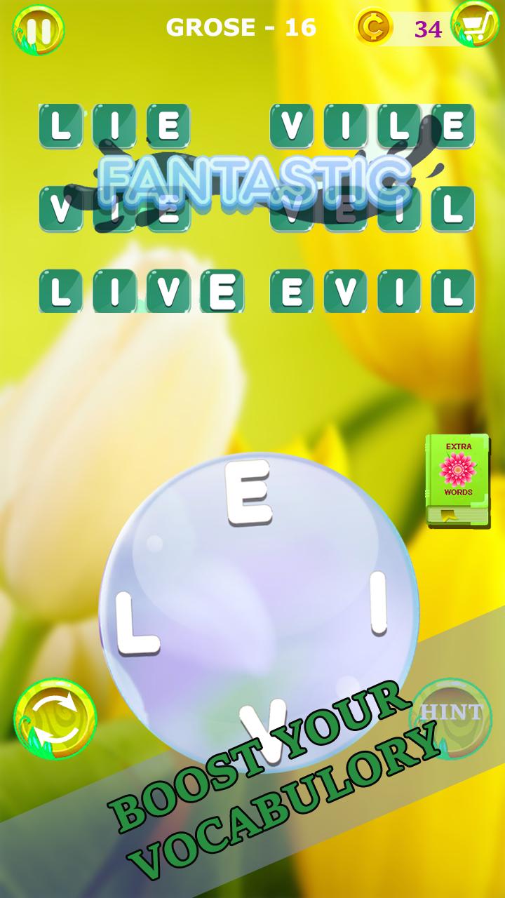 Word Flowers - игра по рисованию линии кроссворда от Crazy Spinners, чтобы принять ваш разум до следующего уровня догадывания слова. Вместо других словесных тривиальных игр мы сосредоточились в основном на приобретении пользователей, чтобы вам не было скучно. Простой, но удивительный игровой процесс, сосредоточен на базовом изучении слов. Как генерировать слова? Как вы можете создать свой собственный список слов в соответствии с правилами грамматики, и наиболее увлекательно вы можете купить подсказки, когда застряли.