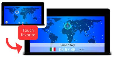 เมื่อคุณสัมผัสแผนที่โลกที่คุณต้องการทราบเวลาเวลาของตำแหน่งจะแสดงเป็นนาฬิกาดิจิตอล
