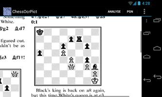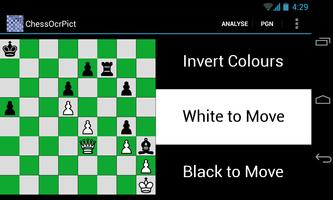 แอพนี้รับรู้ตัวเลขหมากรุก (ไดอะแกรม) ในหนังสือหรือนิตยสาร มันเป็นเวอร์ชันฟรีของ Chessocr https://play.google.com/store/apps/details?id=com.kgroth.chessocr แต่แทนที่จะใช้กล้องหันหลังเข้ามา ภาพที่จับได้นี้จะต้องมีรูปหมากรุกและโดยทั่วไปจะได้รับโดยการจับภาพหน้าจอของรูปหมากรุกที่แสดง (จากไฟล์ PDF หรือหน้าเว็บ) ภาพอินพุตยังสามารถจับได้แบบออฟไลน์โดยใช้กล้องใด ๆ ซึ่งจะถูกถ่ายโอนไปยังอุปกรณ์ Android