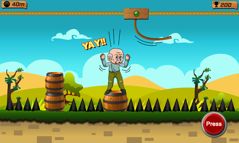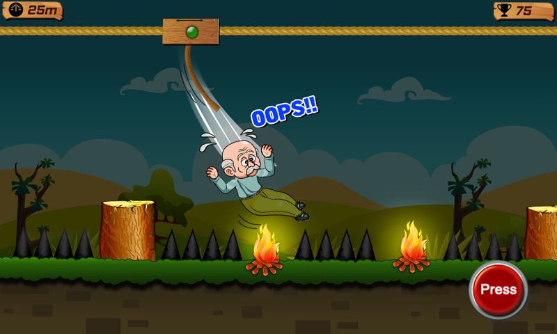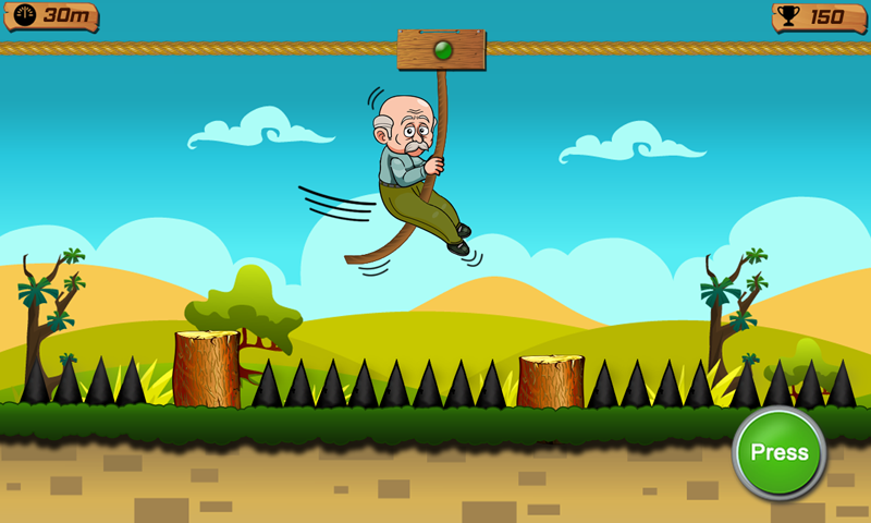 การควบคุมนั้นง่ายมาก When Grandpa is on the rope, press the button to slide on rope and release to jump on the wood log. คุณต้องข้ามบันทึกที่กำหนดทั้งหมดเพื่อดำเนินการต่อไปยังส่วนถัดไป