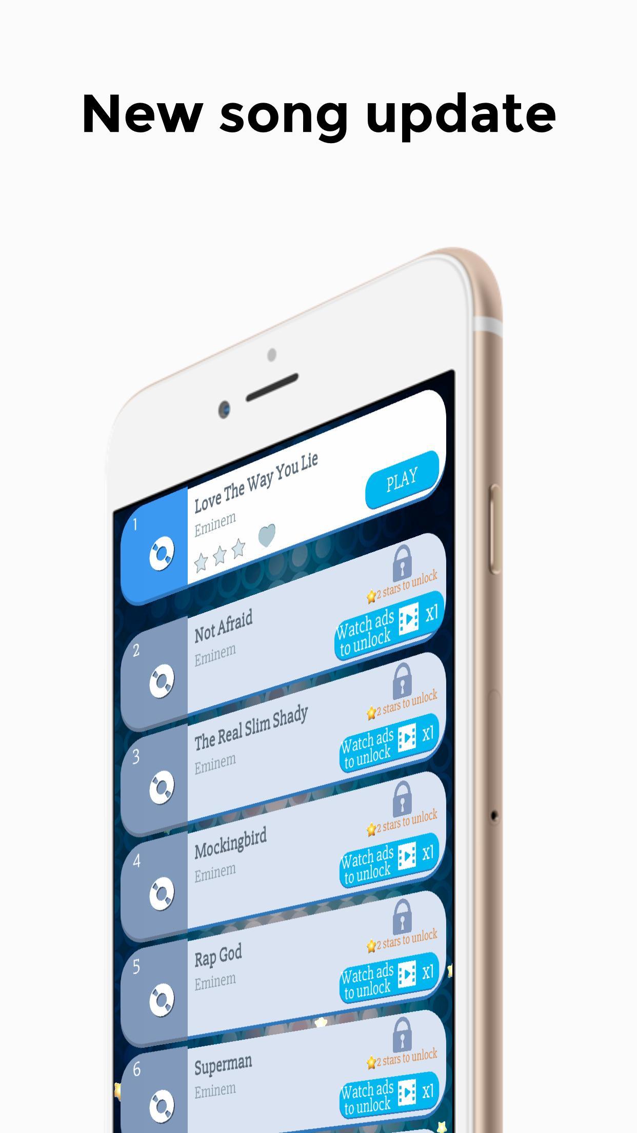 Eminem Piano Game ปรากฏตัวในเกมเปียโนที่มีเพลง Eminem แตะที่หน้าจอและรู้สึกถึงเพลง