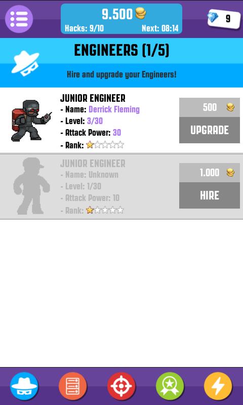 คุณสามารถมีวิศวกรได้สูงสุด 5 คน (แฮ็กเกอร์) พวกเขาทำงานให้คุณเพื่อควบคุมแอพทั้งหมดในโลก