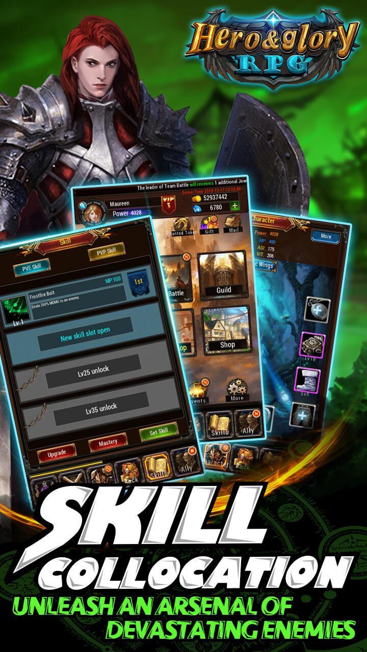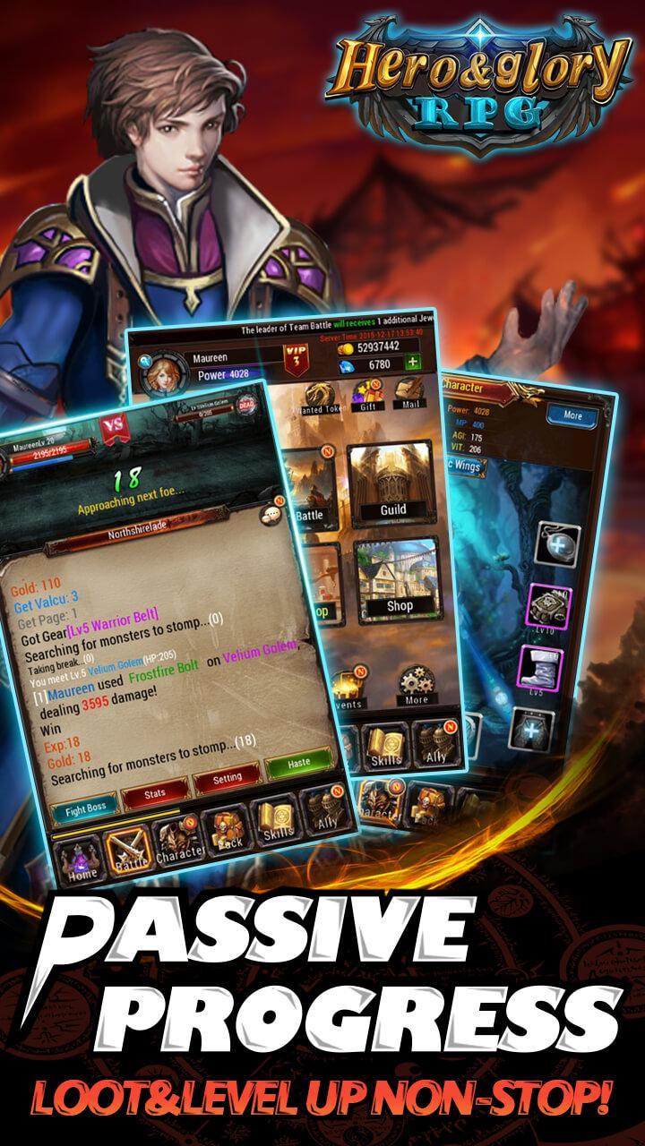 【 Hero & Glory - Auto Battle RPG 】เป็นธีมแฟนตาซีตะวันตกเป็นพื้นหลังของเกม RPG ที่มีหน้าจอเกมพิเศษตัวละครเอฟเฟกต์แบบไดนามิก 3 มิติเพลิดเพลินไปกับภาพที่น่าตกใจ