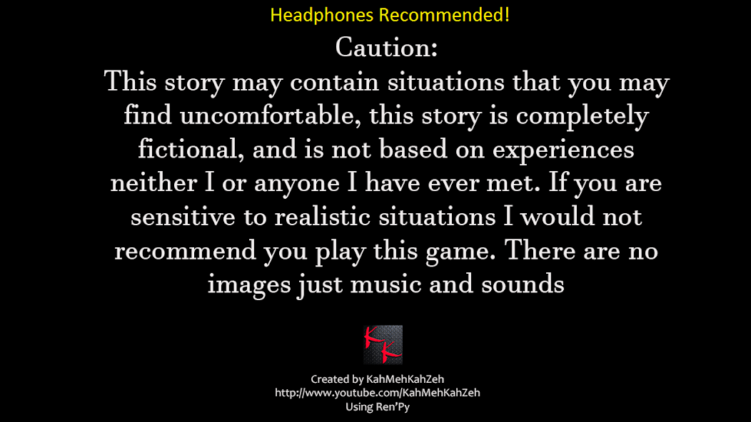 นี่คือประสบการณ์ ประมาณ 30 นาทีหรือนานกว่านั้นขึ้นอยู่กับว่าคุณได้รับตอนจบทั้งหมดหรือไม่ เกมนี้เป็นเรื่องราวที่ใช้ข้อความโดยใช้เสียงเพลงและข้อความเท่านั้นตอนจบ 3 รายการ (ที่ 4 เสร็จสิ้น)
