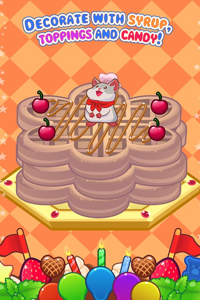 จากผู้สร้างเครื่องทำไอศกรีมของฉันและผู้ผลิตคัพเค้กของฉันตอนนี้คุณจะได้ช่วยแฮมสเตอร์ตัวน้อยน่ารักและตกแต่งวาฟเฟิลแสนอร่อยในเครื่องทำวาฟเฟิลของฉัน!