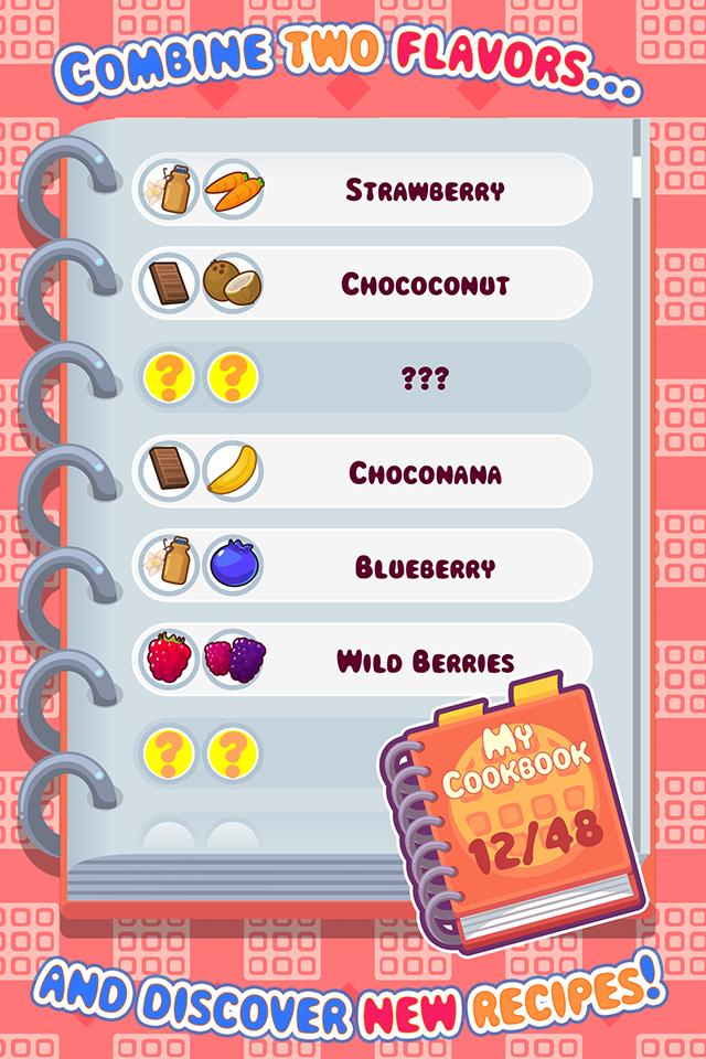ผสมรสชาติและสร้างวาฟเฟิลที่เป็นเอกลักษณ์! Go Choconanas ผสมและจับคู่! รวมสองรสชาติและค้นพบสูตรอาหารใหม่ ๆ เพื่อเพิ่มลงในหนังสือสูตรของคุณ - คุณต้องคาดเดาและลองสิ่งใหม่ ๆ เพื่อให้คุณสามารถทำให้พวกเขาถูกต้องและทำหนังสือแห่งความสุขให้เสร็จ!