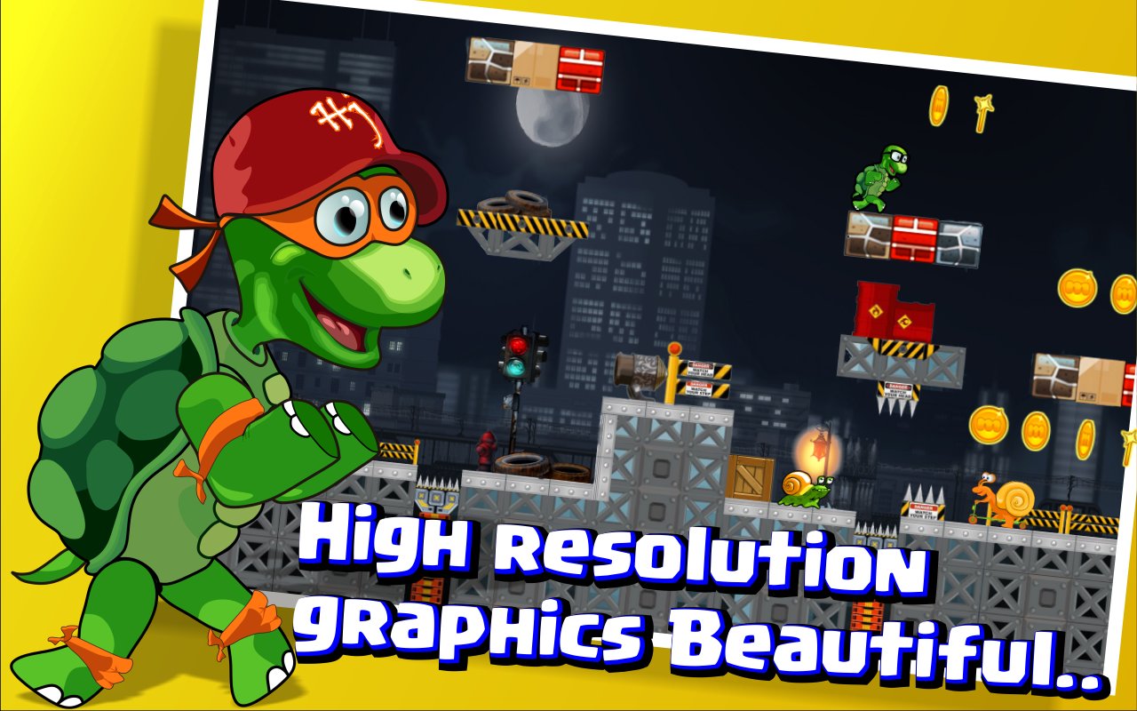 กระโดดและดำเนินการโดย Super Turtle Ninja Kids ในเกมแพลตฟอร์มนี้ผ่าน 80 ด่านที่น่าตื่นเต้น