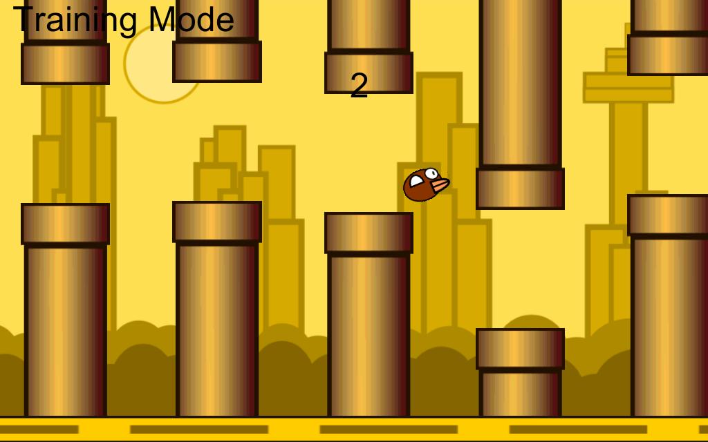 โหมดการฝึกอบรมการบินช่วยให้คุณสามารถปรับเปลี่ยนพารามิเตอร์เกมหลายตัวเช่นความเร็วนกและขนาดช่องว่างท่อเพื่อควบคุมระดับความยากลำบากจากง่ายมากเป็นไปไม่ได้ โหมดการฝึกอบรมยังช่วยให้คุณฝึกด้วยนกตัวเดียวได้เช่นกัน