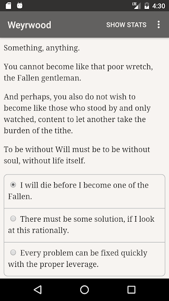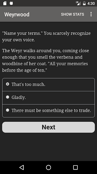 " Weyrwood " เป็นนวนิยายแฟนตาซีเชิงโต้ตอบความยาว 174,000 คำโดย Isabella Shaw ซึ่งตัวเลือกของคุณจะควบคุมเรื่องราว เป็นแบบข้อความทั้งหมด โดยไม่มีกราฟิกหรือเอฟเฟ็กต์เสียง และขับเคลื่อนด้วยพลังแห่งจินตนาการอันกว้างใหญ่ที่ไม่อาจหยุดยั้งได้
