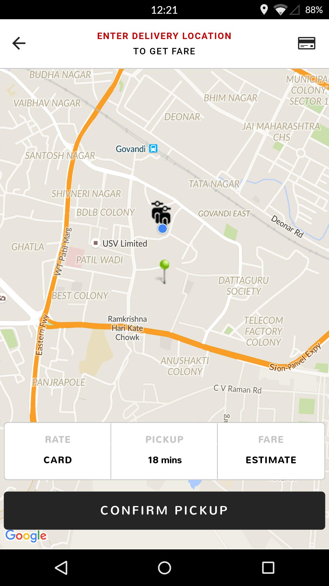 4)透明度:该应用程序根据取货和跌落位置之间的距离计算交货票价。