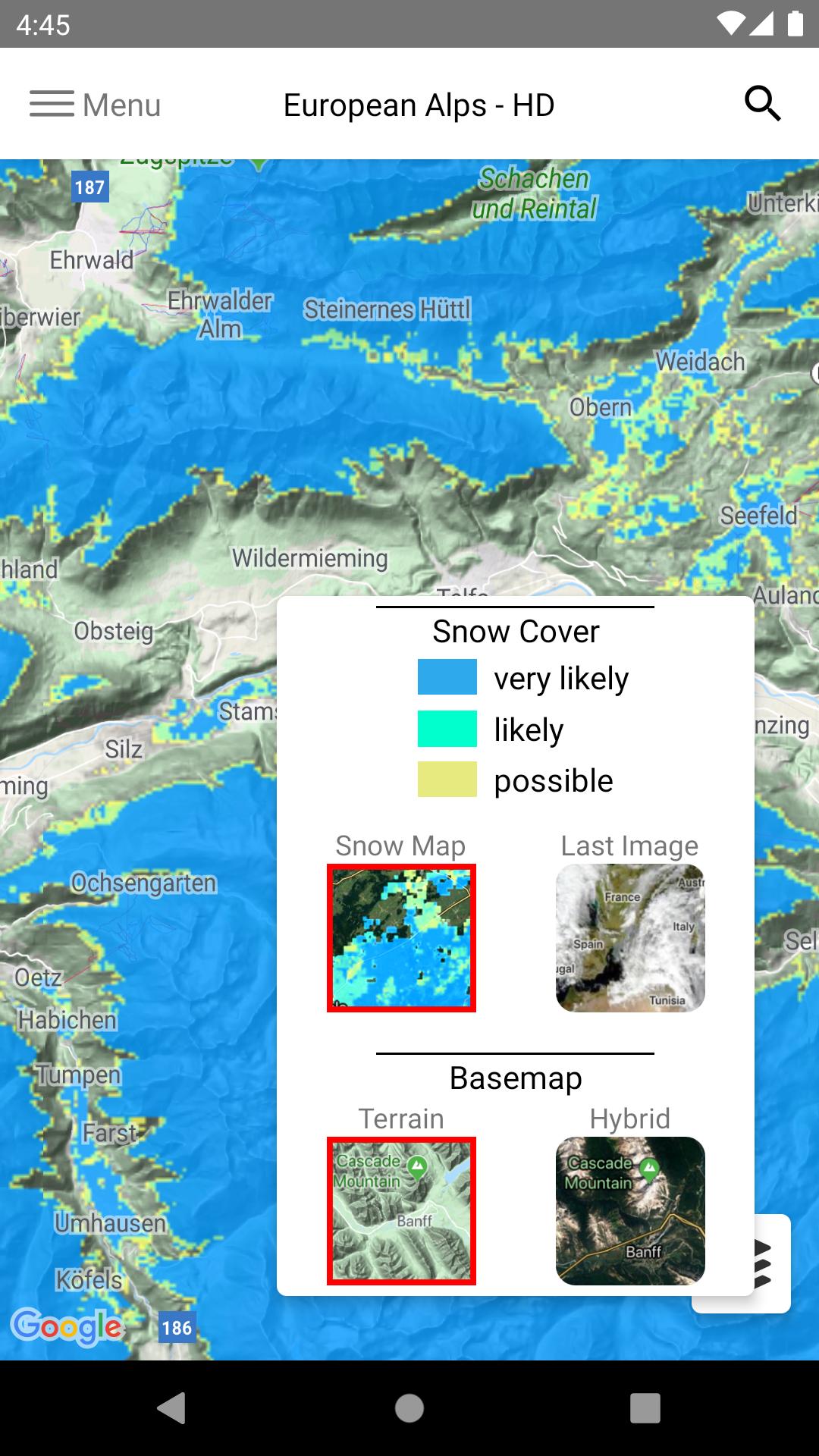 该应用程序为您提供了基于NASA和ESA卫星数据的最新和无缝的积雪概率。