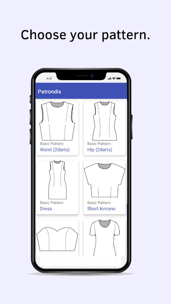 - 应用程序每月订阅:支付您的订阅并立即开始创建定制服装基本图案。