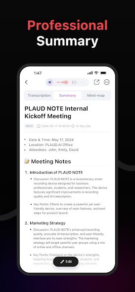 PLAUD结合了AI技术,以多种语言获得高效,准确的文本转录服务,并结合AI的最新功能,从而大大增强了将自然语音转换为文本的过程,从而提高了日常工作效率。