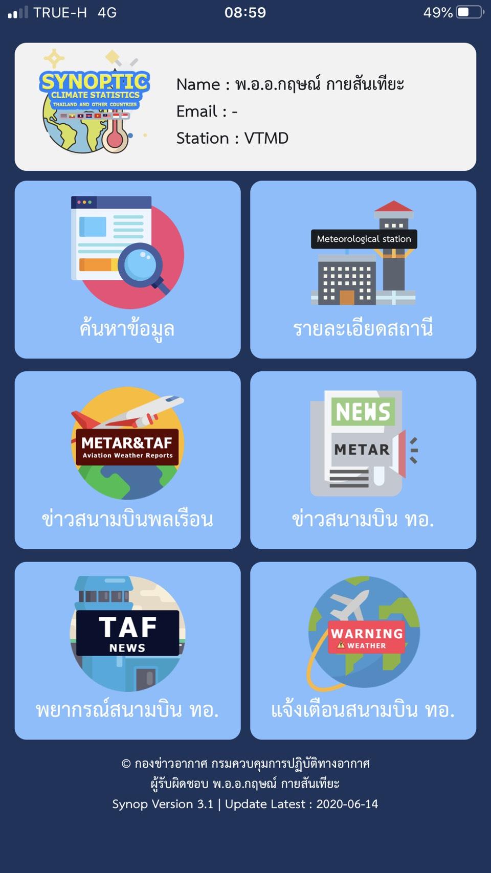 - (Metar & Taf) 民用机场机场区域的每小时天气新闻和天气预报。泰国及周边国家