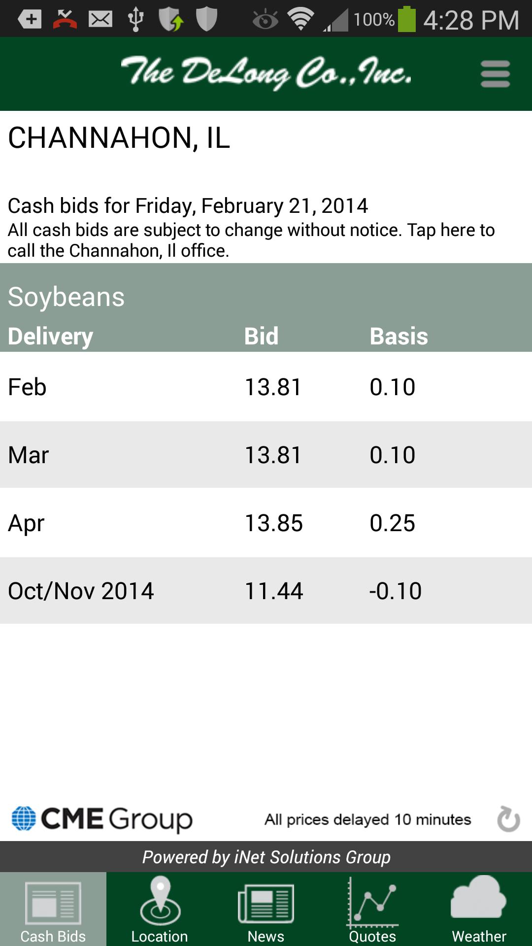 Delong Co应用程序提供当前的投标,市场,天气和评论。