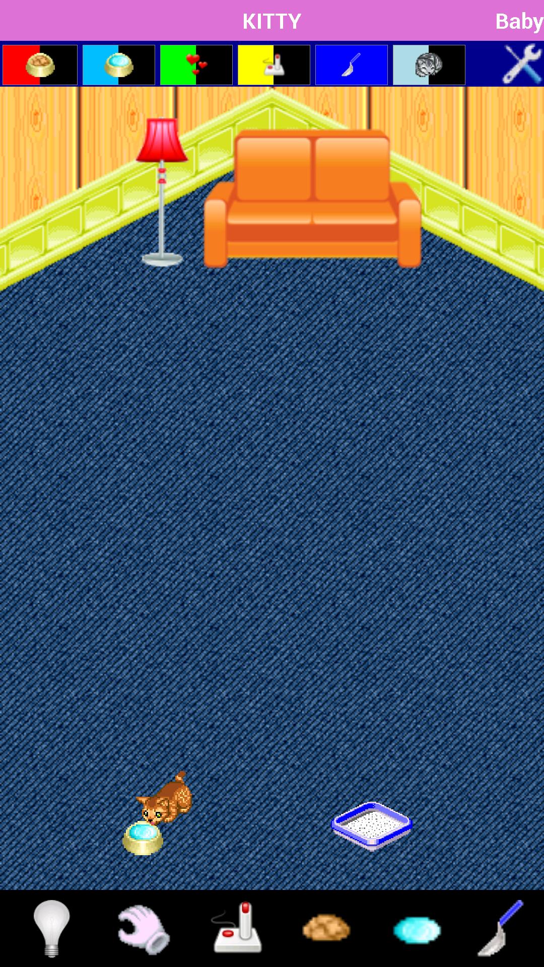 - 灯:单击它发送您的虚拟宠物睡觉或唤醒。为了加载疲劳吧,您的猫处于睡眠状态。