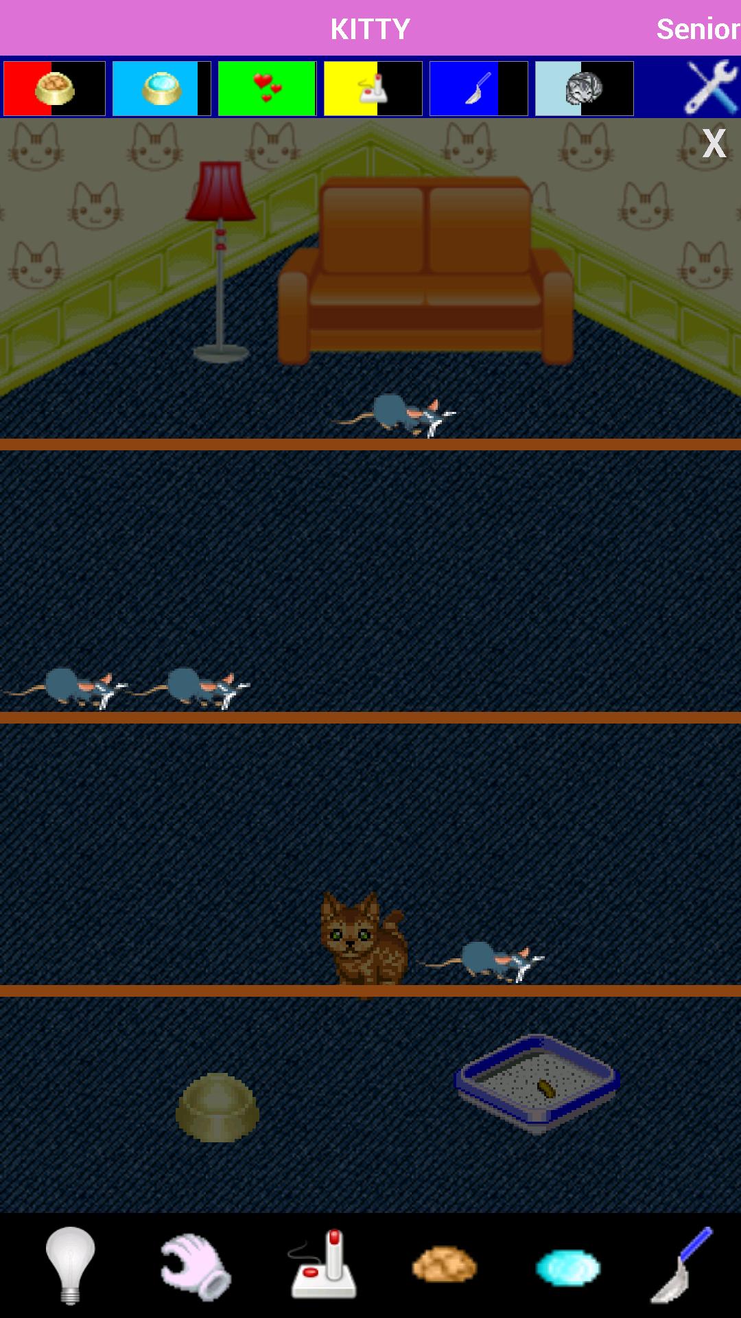 - 操纵杆:单击它与虚拟猫一起玩岩石,纸,剪刀。这也将加载可爱栏。