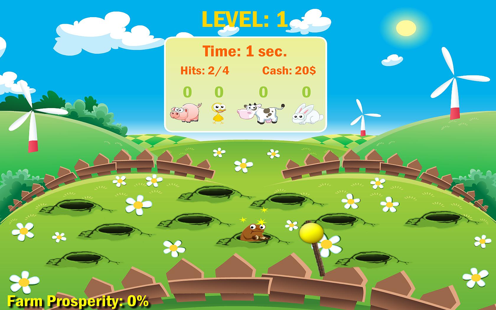 对于您用锤子击中的每个痣,您的农场更安全,您会为此而获得钱。