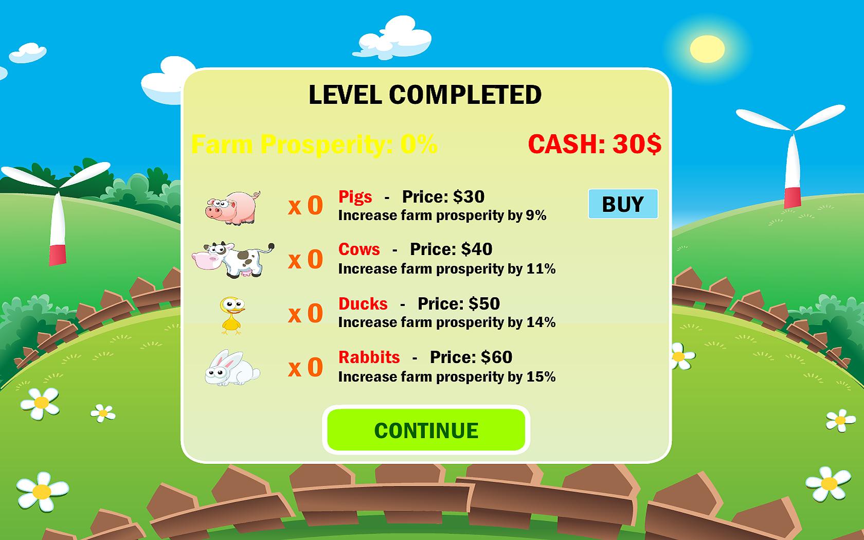 这样,您的农场将越来越繁荣,您将能够购买猪,牛,鸭子和兔子等农场动物。