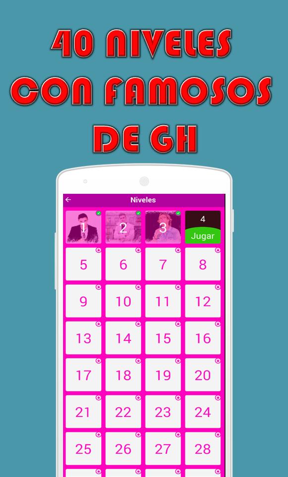当您开始游戏时,屏幕上将显示第五版或上一的参赛者的图像。在下部,您将有一个带有字母的面板,其中包括我们参赛者的名字。但是它很熟练,因为它不容易猜测,因为它包含了所有GH VIP版本的所有参赛者的图像。