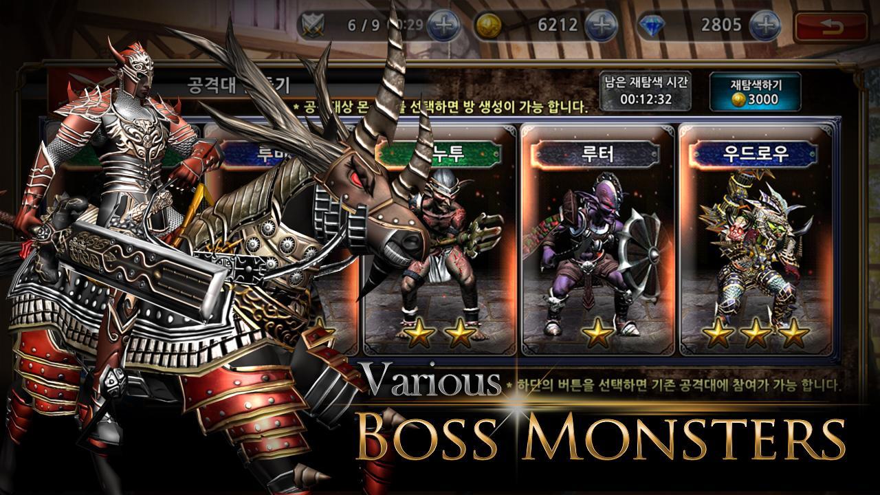 游戏玩法:单曲(任务,地牢策略,挑战之塔),Multi(Relic War,游戏的宝座,Monster Raid)