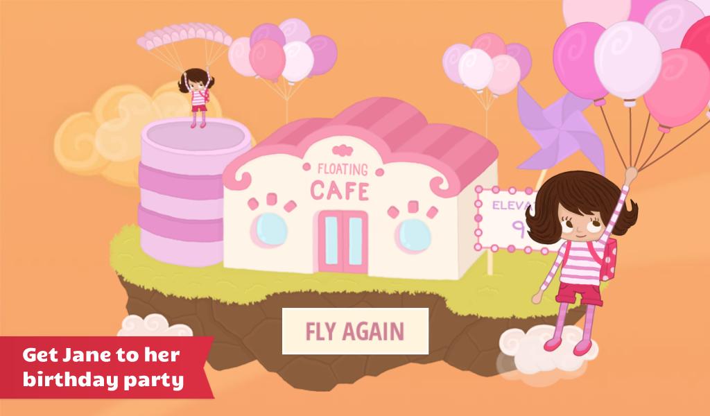 欢迎, Little Jane ,您被邀请参加天空中的年度聚会!但是,看来今天的天空充满了障碍。参加聚会并认识您的朋友!