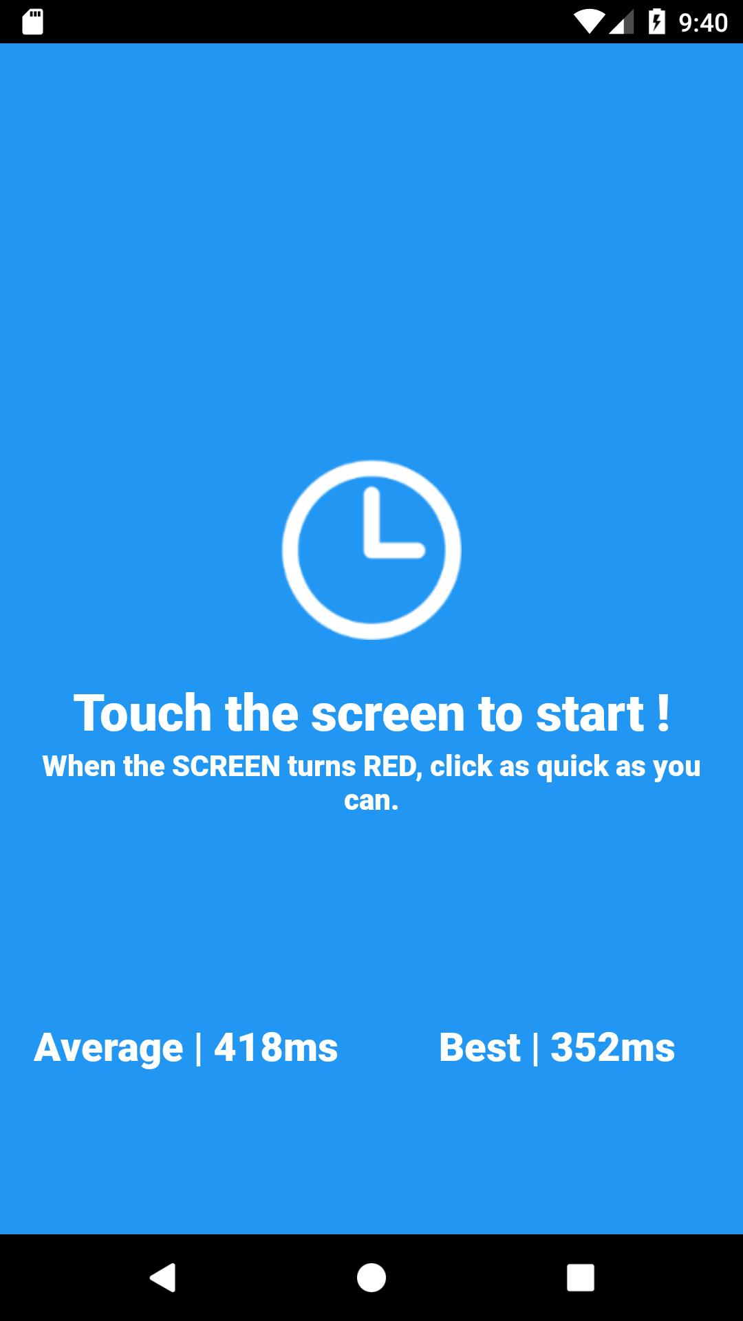 3。该应用将向您展示在红屏幕上做出反应并单击它花费多少时间。
