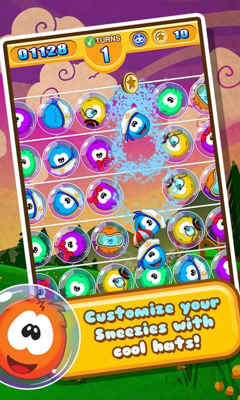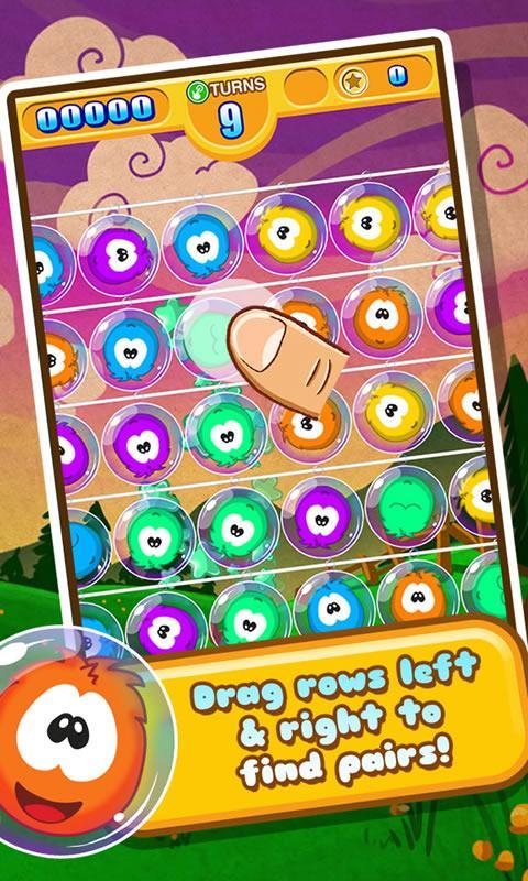 用手指向左或向右滑动一排排打喷嚏,以找到相同颜色的对。