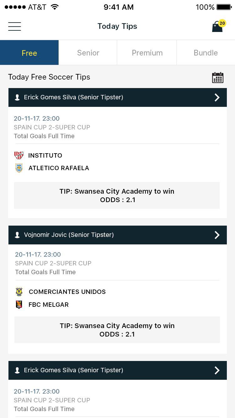 关注表现最好的专业足球提示者,并通过足球提示者市场移动应用程序随时随地获取最新的免费足球提示。