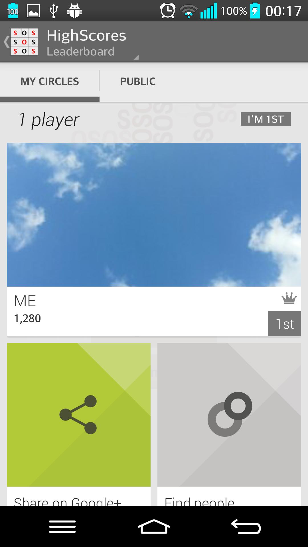 如果您以单人模式结束,则该游戏将在在线指示器中发送到Google+。您可以每天,每周或始终看到最好的玩家。