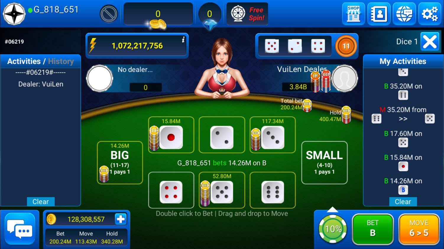 快来VuiLen享受骰子、老虎机、天伦、德州扑克吧。您将有机会与世界各地的朋友和游戏竞争对手进行社交。玩得开心!