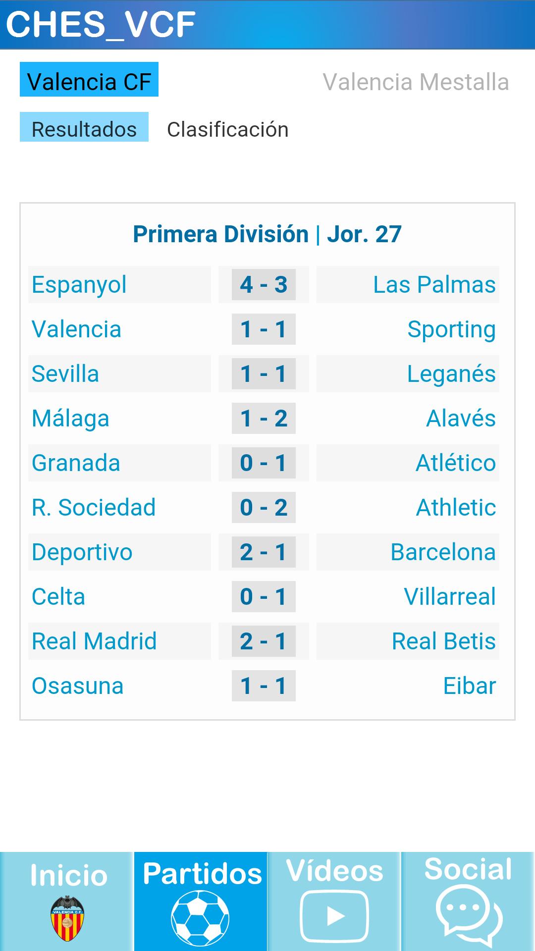 - 各方:訪問結果和Valencia CF和Valencia Mestalla的分類的快速方法。