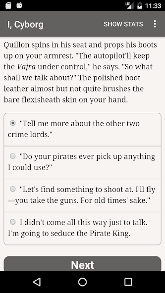 “ I, Cyborg ”是Tracy Canfield的300,000字互動科幻小說。它完全是基於文本的,沒有圖形或聲音效果,並且在您的想像力的巨大,不可阻擋的力量中推動了它。