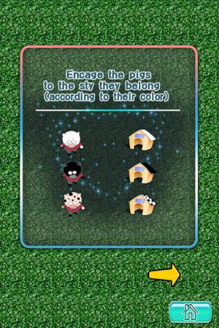 該遊戲是一款街機遊戲,可以幫助來自不同方向的小豬找到自己的家。