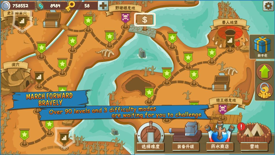 •通過升級,獲得裝備和升級技能來發展英雄!